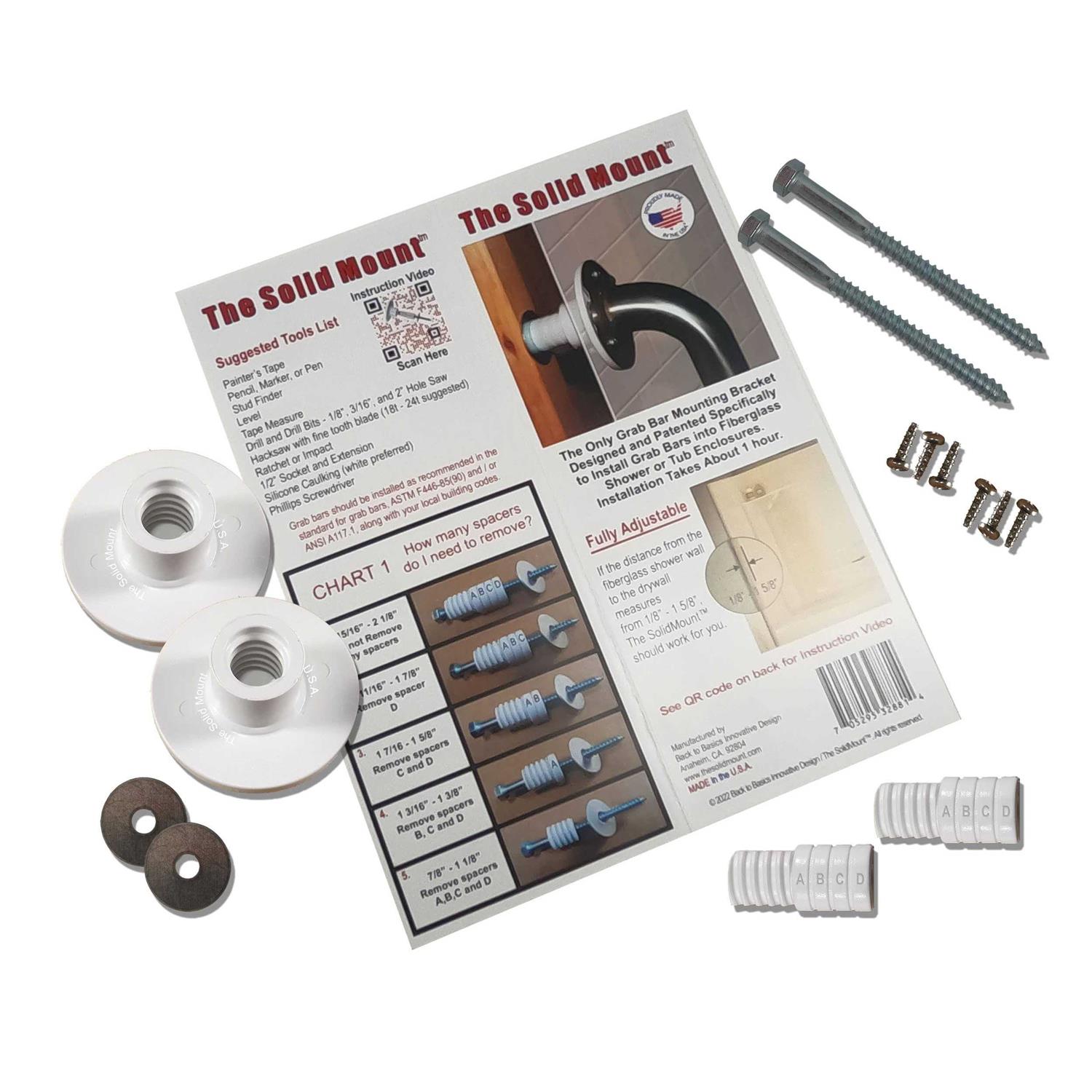Grab Bar Mounting Kit for Fiberglass Showers The “Original” Solid Mount