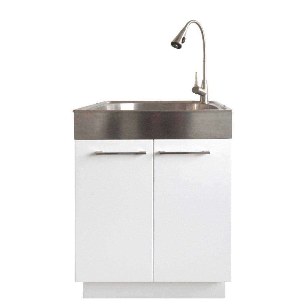 Glacier Bay All-in-One 24.2 in. x 21.3 in. x 33.8 in. Stainless Steel Laundry Sink and White 2 Door Cabinet