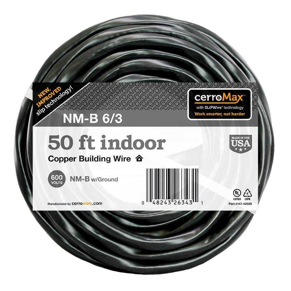 Cerrowire 50 ft. 6/3 Black Stranded CerroMax SLiPWire Copper NM-B Wire