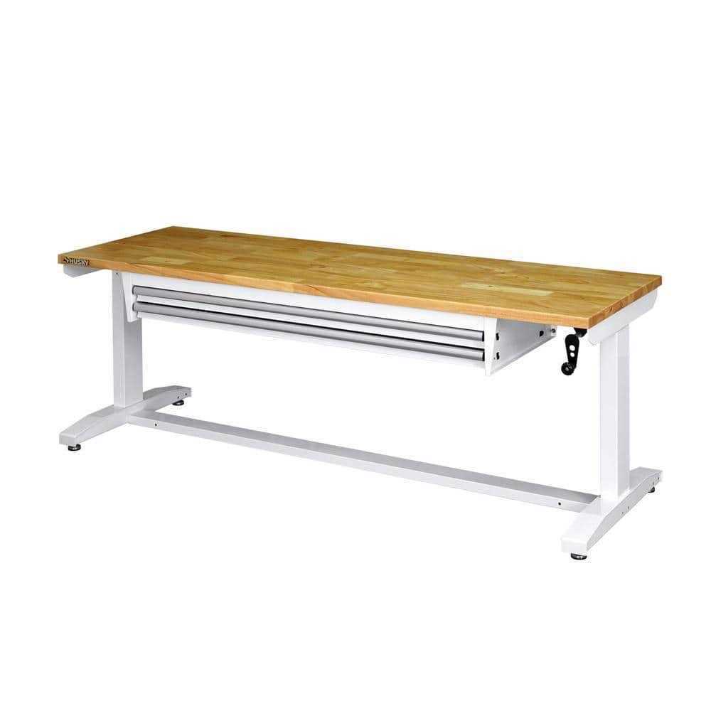 Husky 72 in. 2-Drawers Adjustable Height Work Table in White
