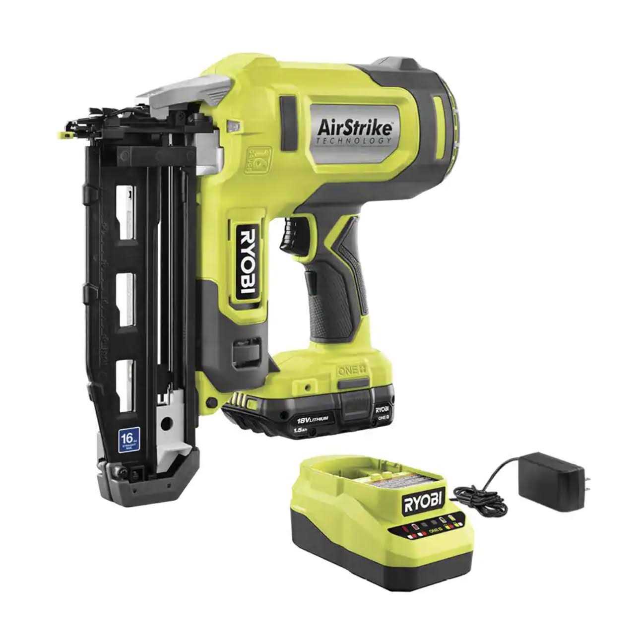 RYOBI ONE+ 18V 16-Gauge Cordless AirStrike Finish Nailer with 1.5 Ah Battery and Charger