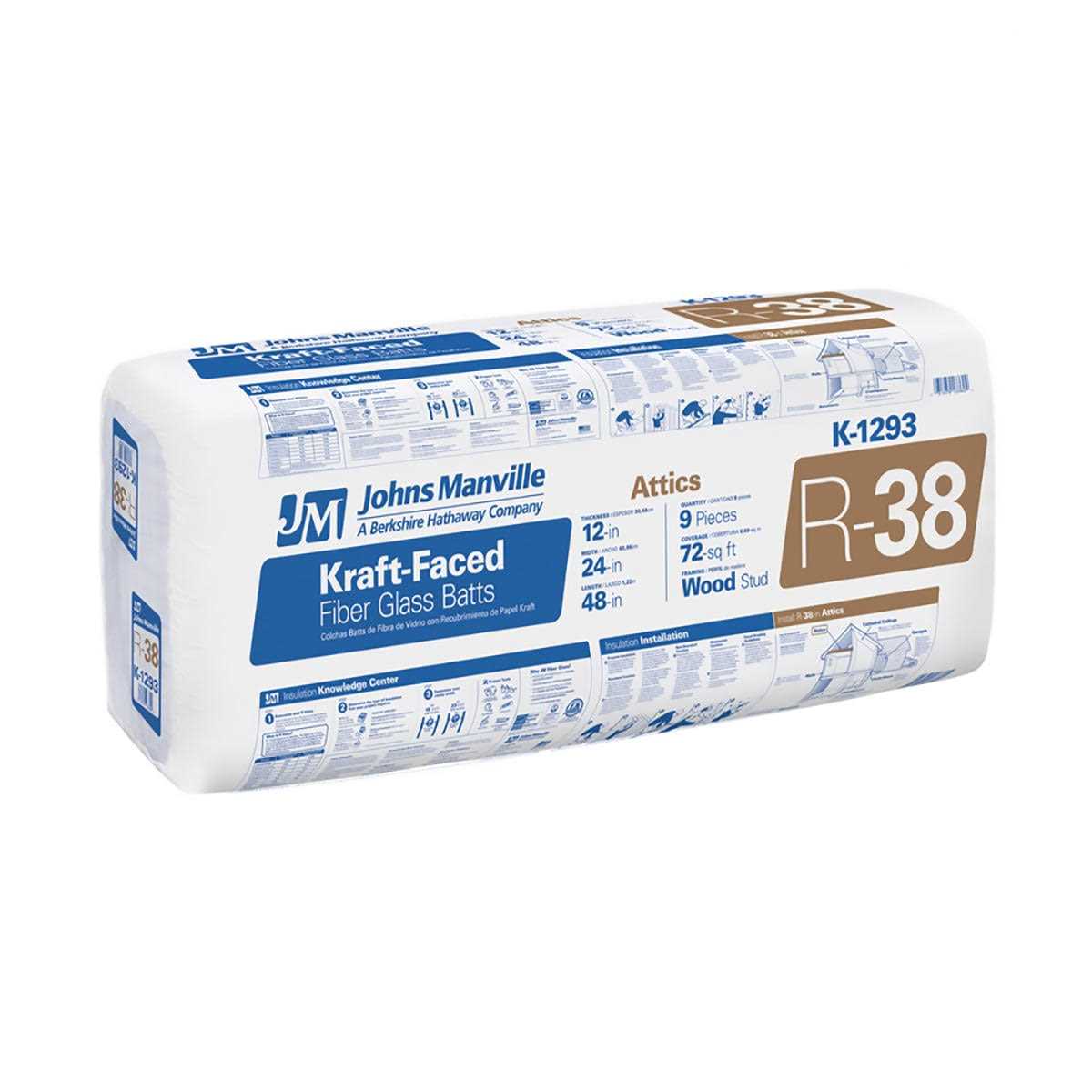 Johns Manville R-38 Attic 72-sq ft Kraft Faced Fiberglass Batt Insulation Individual pack