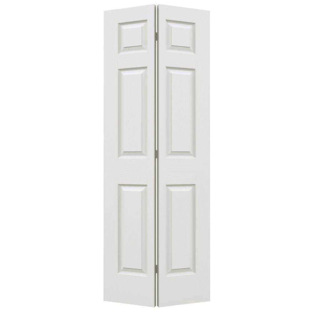 JELD-WEN 30 in. x 78 in. 6 Panel Colonist Primed Textured Molded Composite Hollow Core Closet Bi-Fold Door