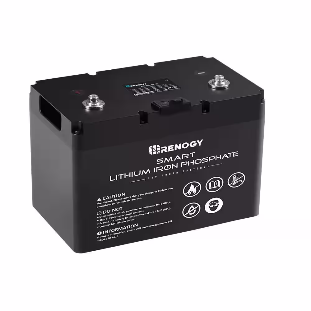 Renogy 12-Volt 100AH LiFePO4 Deep Cycle Lithium Battery Over 4000 Cycles, BMS, Backup Power for RV Marine, Maintenance-Free