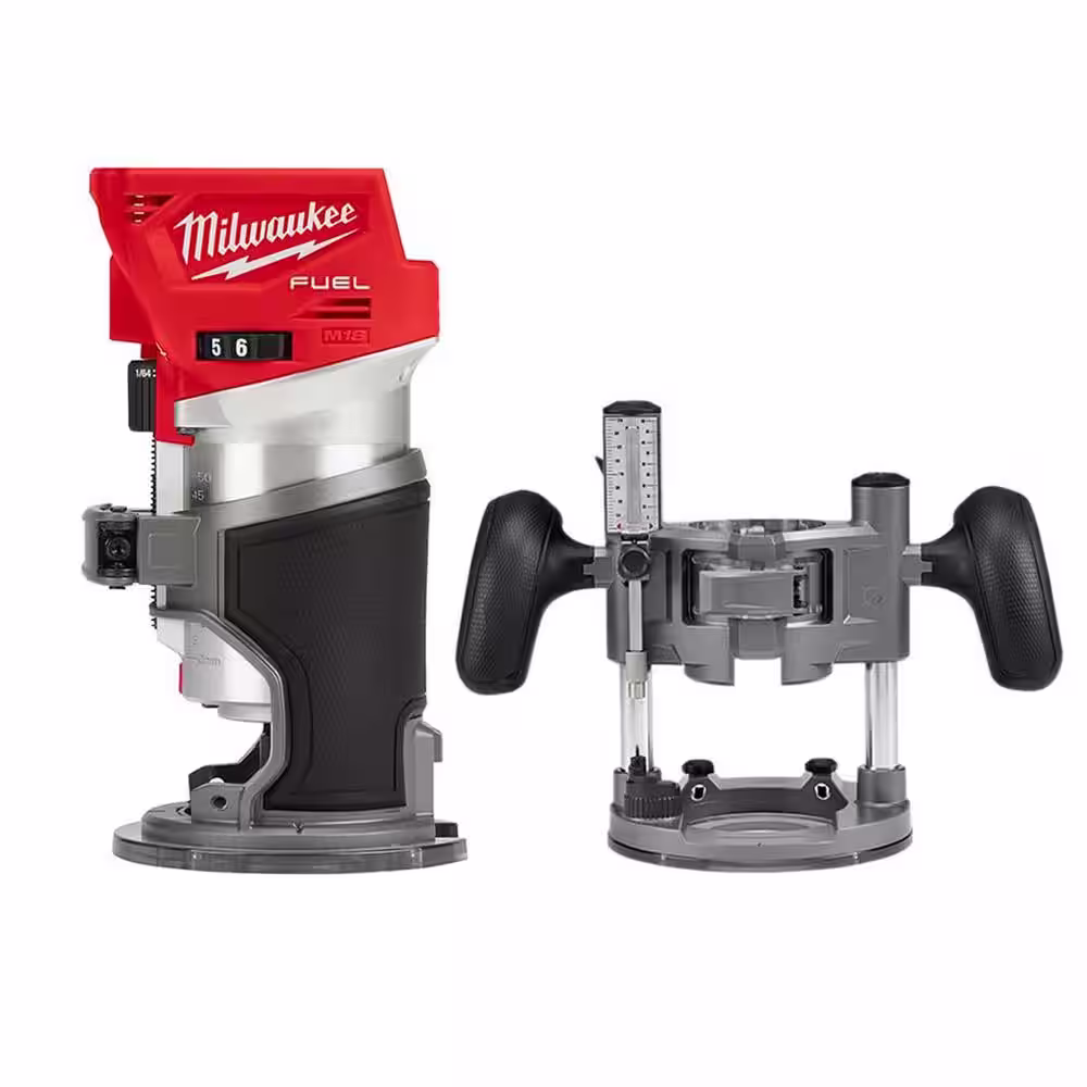 Milwaukee M18 FUEL 18V Lithium-Ion Brushless Cordless Compact Router w/ Compact Router Plunge Base