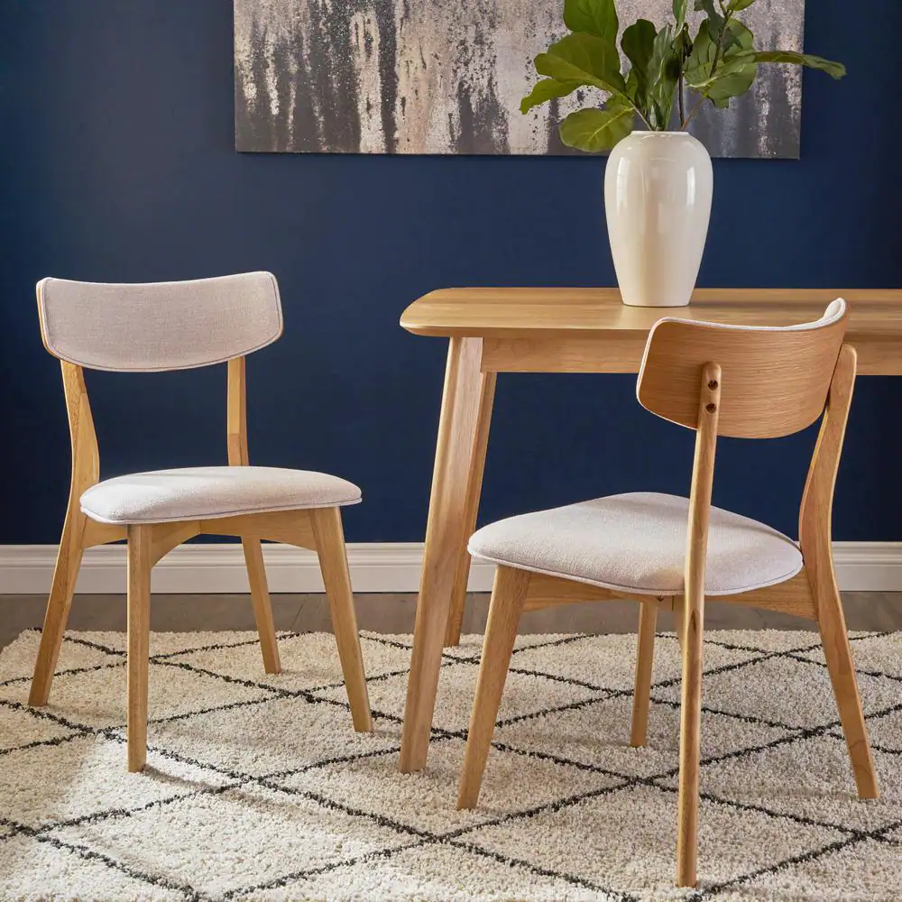 None Abrielle Light Beige and Natural Oak Fabric Dining Chairs (Set of 2)