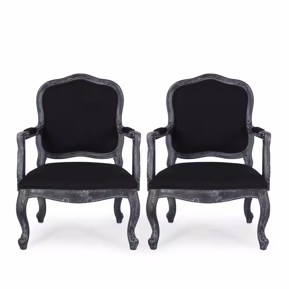 Noble House Joni Black and Gray Upholstered Dining Armchair (Set of 2)