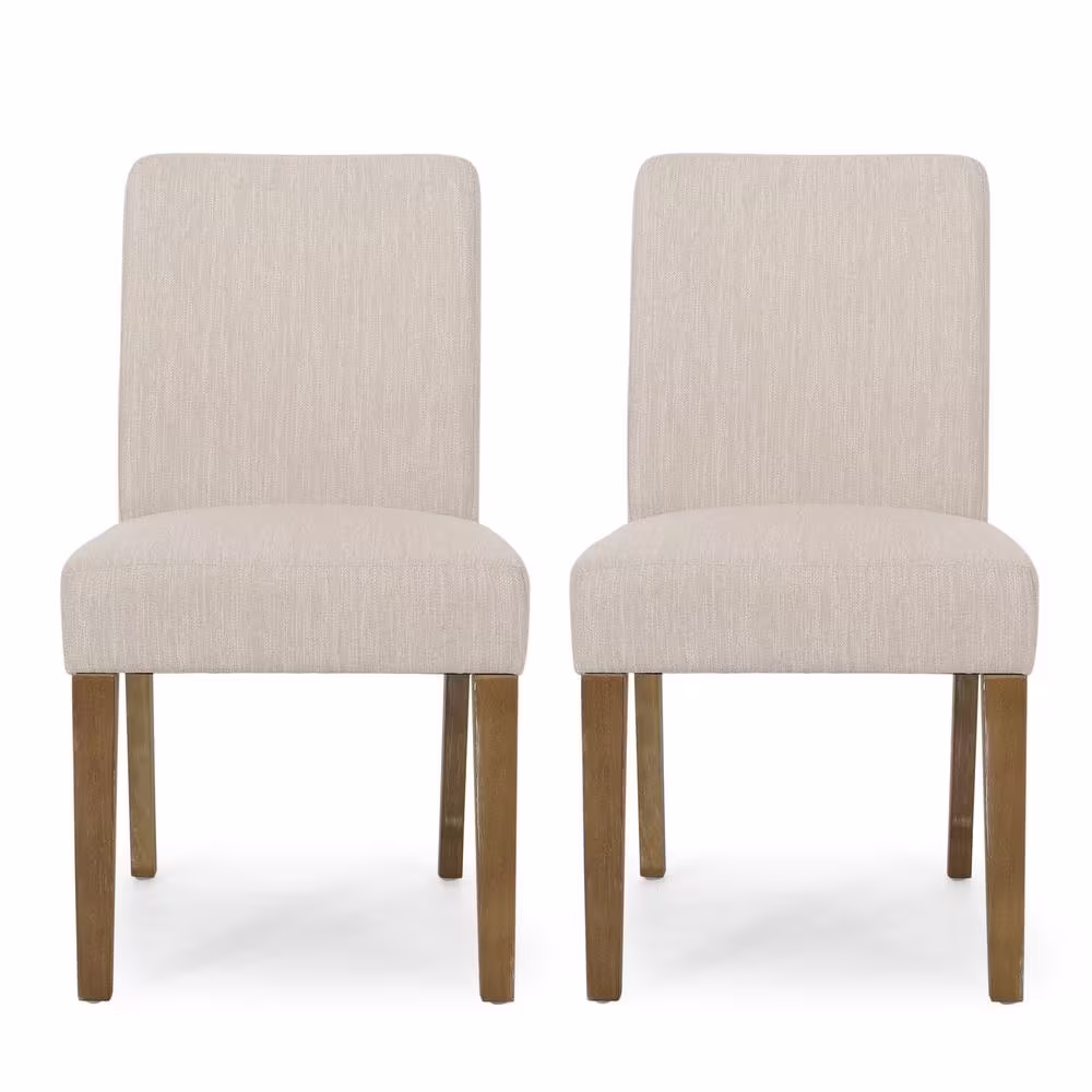 Noble House Dimitri Light Beige and Walnut Fabric Upholstered Dining Chair (Set of 2)