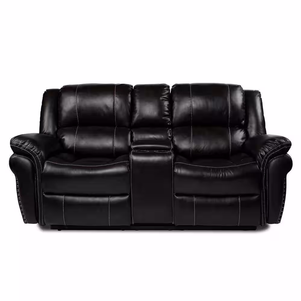 hzlagm Yingj 79 in. Wide Pillow Top Arm Faux Leather Straight Reclining and Storage Sofa in Brown
