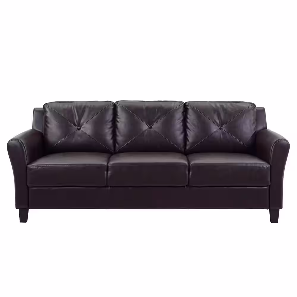Lifestyle Solutions Romeo 31.5 in. Java Faux Leather Microfiber 3-Seater English Rolled Arm Sofa with Removable Cushions