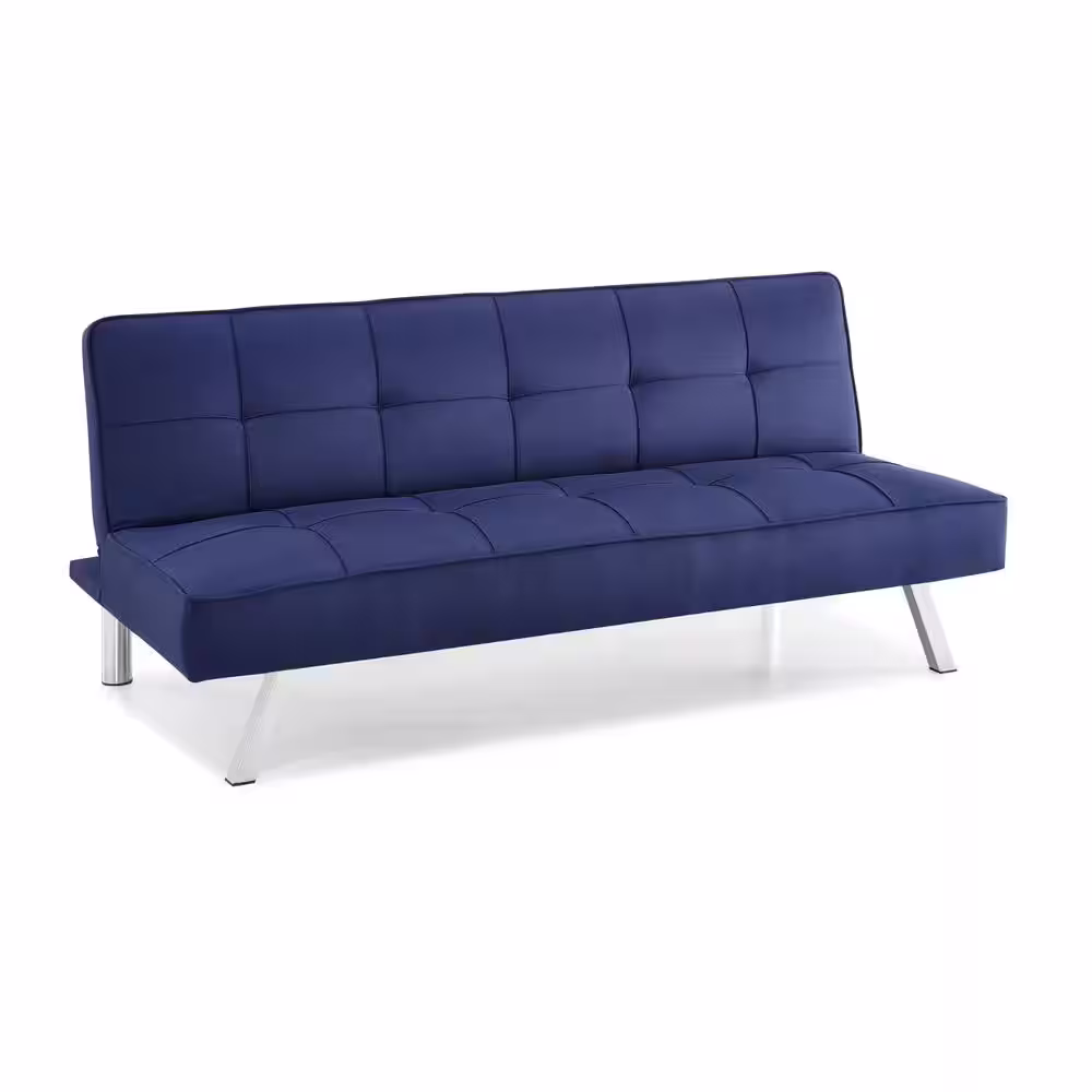 Serta Calgiri 66.1 in. Blue Fabric 3-Seater Armless Convertible Tuxedo Sofa