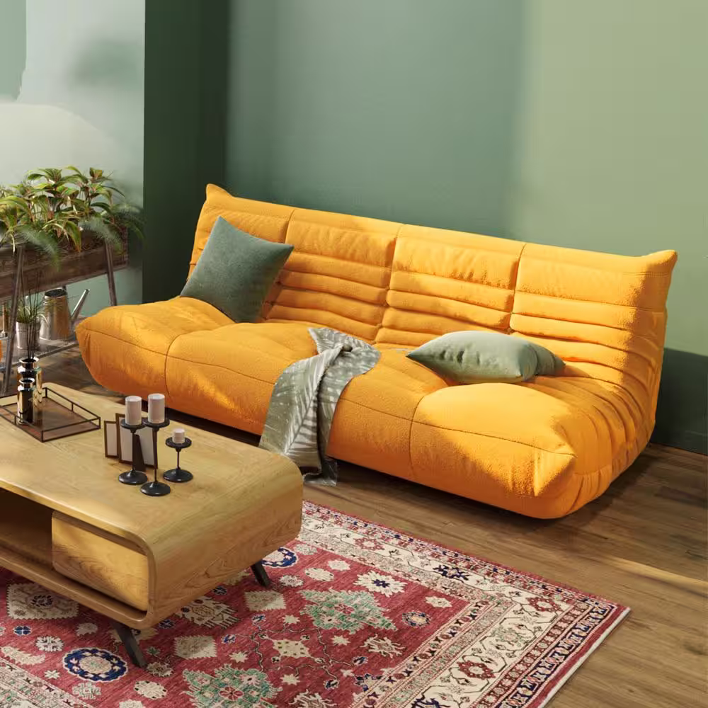 Magic Home 68.9 in. Armless Teddy Velvet Rectangle Bean Bag Top Thick 3 Seats Lazy Sofa Couch in Yellow