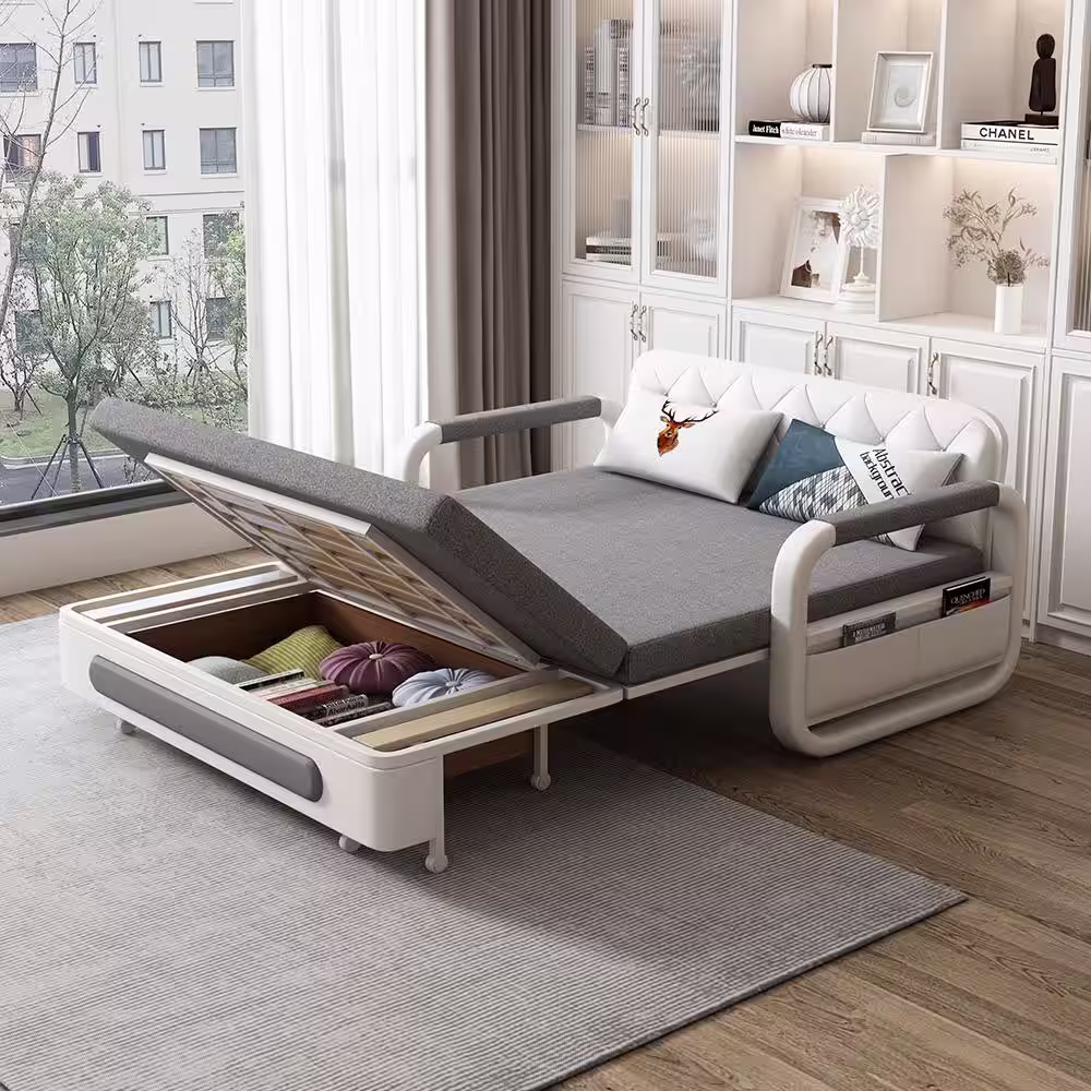 None Koro 50.3 in. Rolled Arms Gray Polyester Sofa Bed Gray