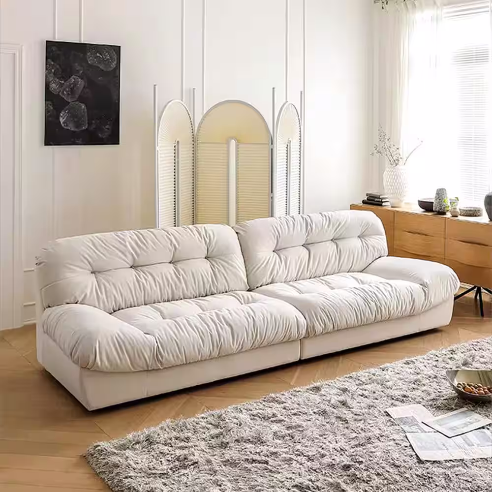 Magic Home 105 in. Anti Scratch Fabric Minimalist Armless 3-Seats Leisure Lazy Sofa Room Furniture Couch for Apartment, Beige