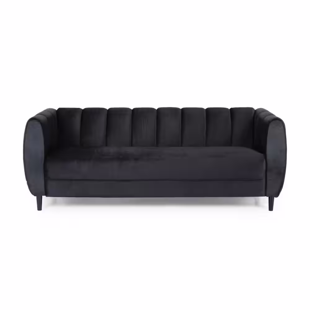 Noble House Bobran 83.25 in. Black Solid Velvet 3-Seat Tuxedo Sofa