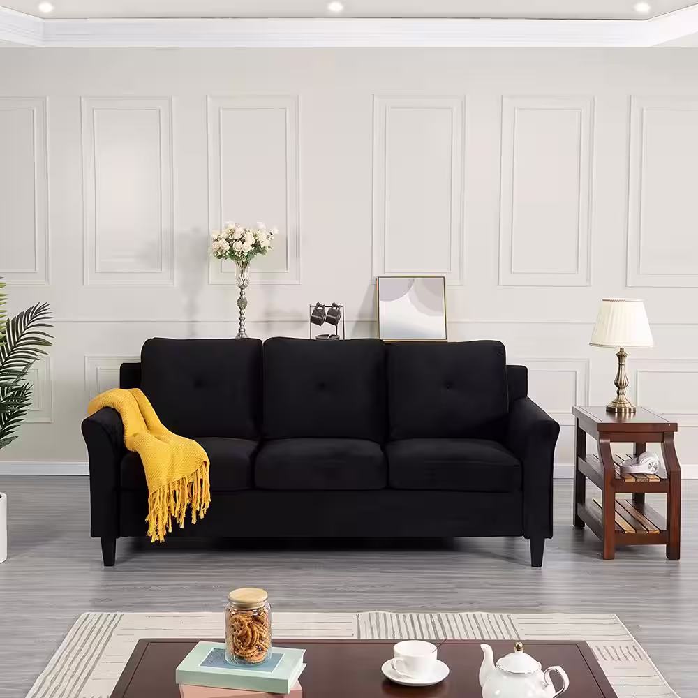 HOMESTOCK Button Tufted Sofa - Affordable Black Modern Sofa for Budget-Conscious Buyers -Microfiber Couch for Small Spaces