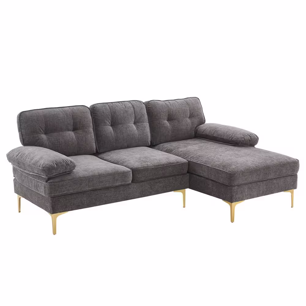 None 83 in. Wide Square Arm Chenille Mid-Century L-Shaped Sofa in Dark Gray 3-Seats