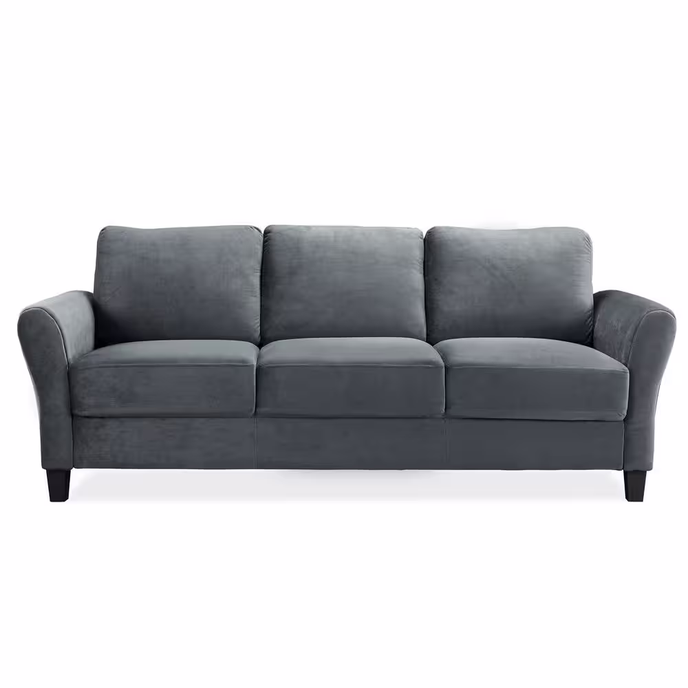 Lifestyle Solutions Wesley 31.5 in. Dark Grey Microfiber 4-Seater Tuxedo Sofa with Round Arms