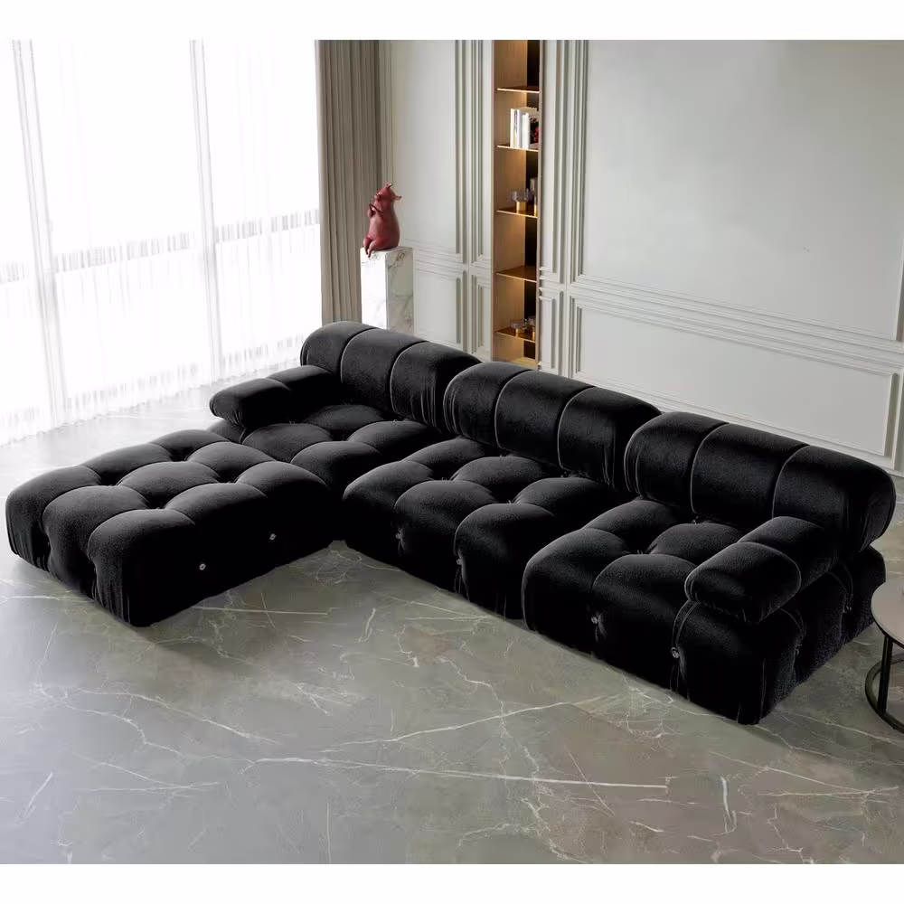 Magic Home 103.95 in. Convertible Modular Minimalist Sofa Free Combination L-Shaped 4 Seater Velvet Sectional with Ottoman, Black