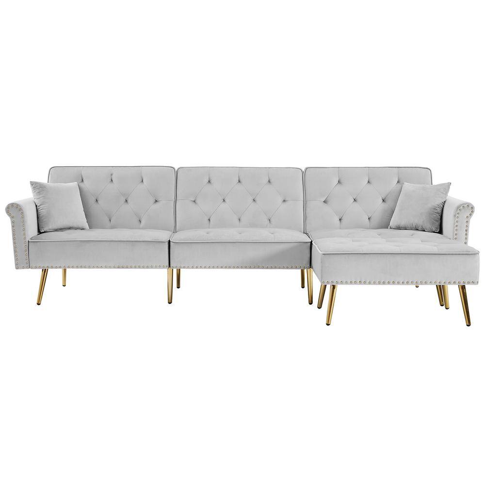 Utopia 4niture Matilda 57.90 in. Light Gray Velvet L-Shaped Twin Size Sofa Bed with Ottoman