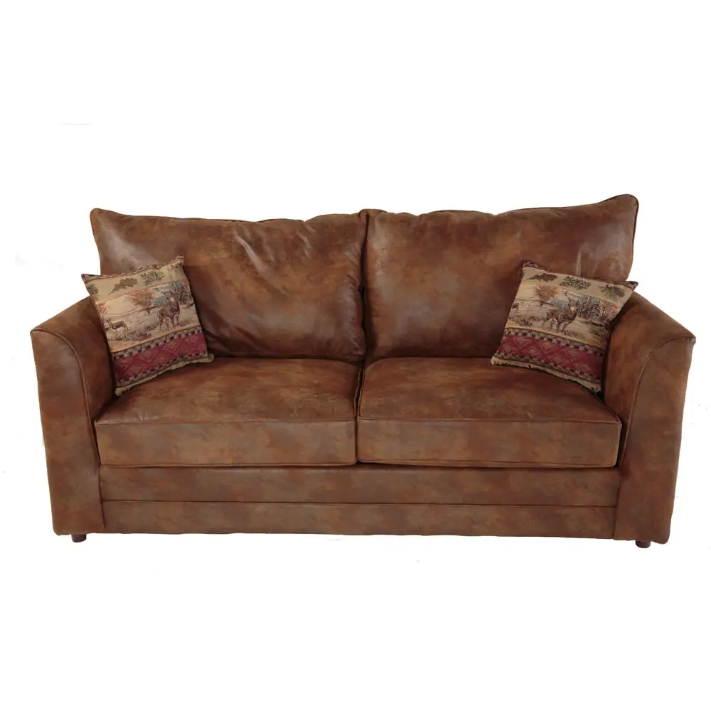 American Furniture Classics Deer Teal Lodge 88 in Brown Microfiber Queen Size Sofa Bed with Nail Head Accents