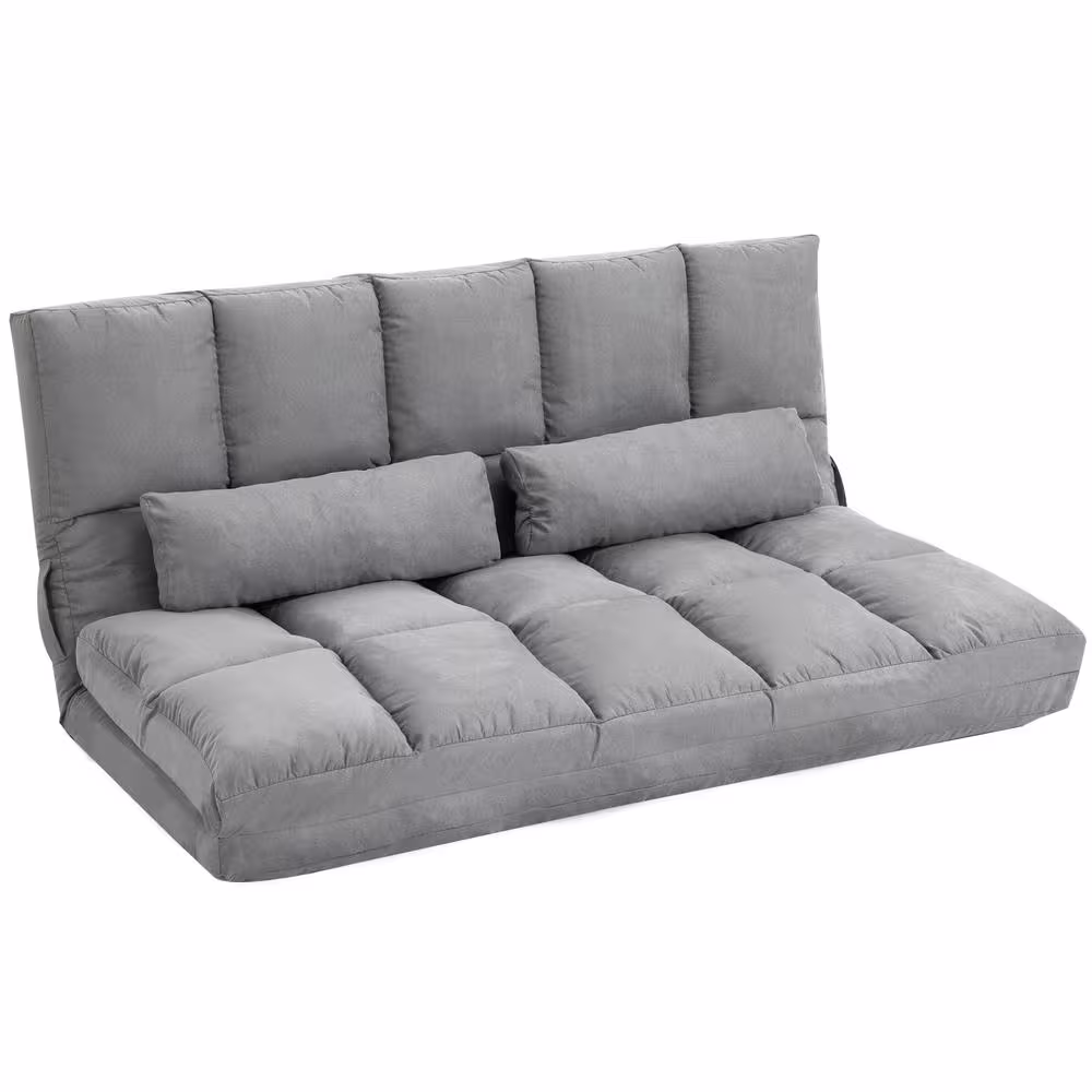 HOMCOM 51.25" Grey Suede Double Floor Sofa Bed with 7-Position Adjustable Backrest