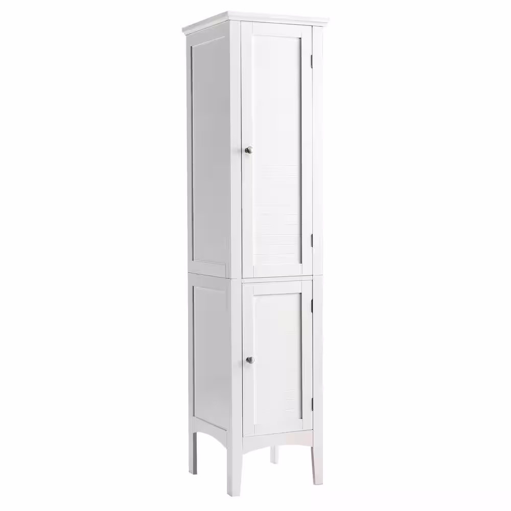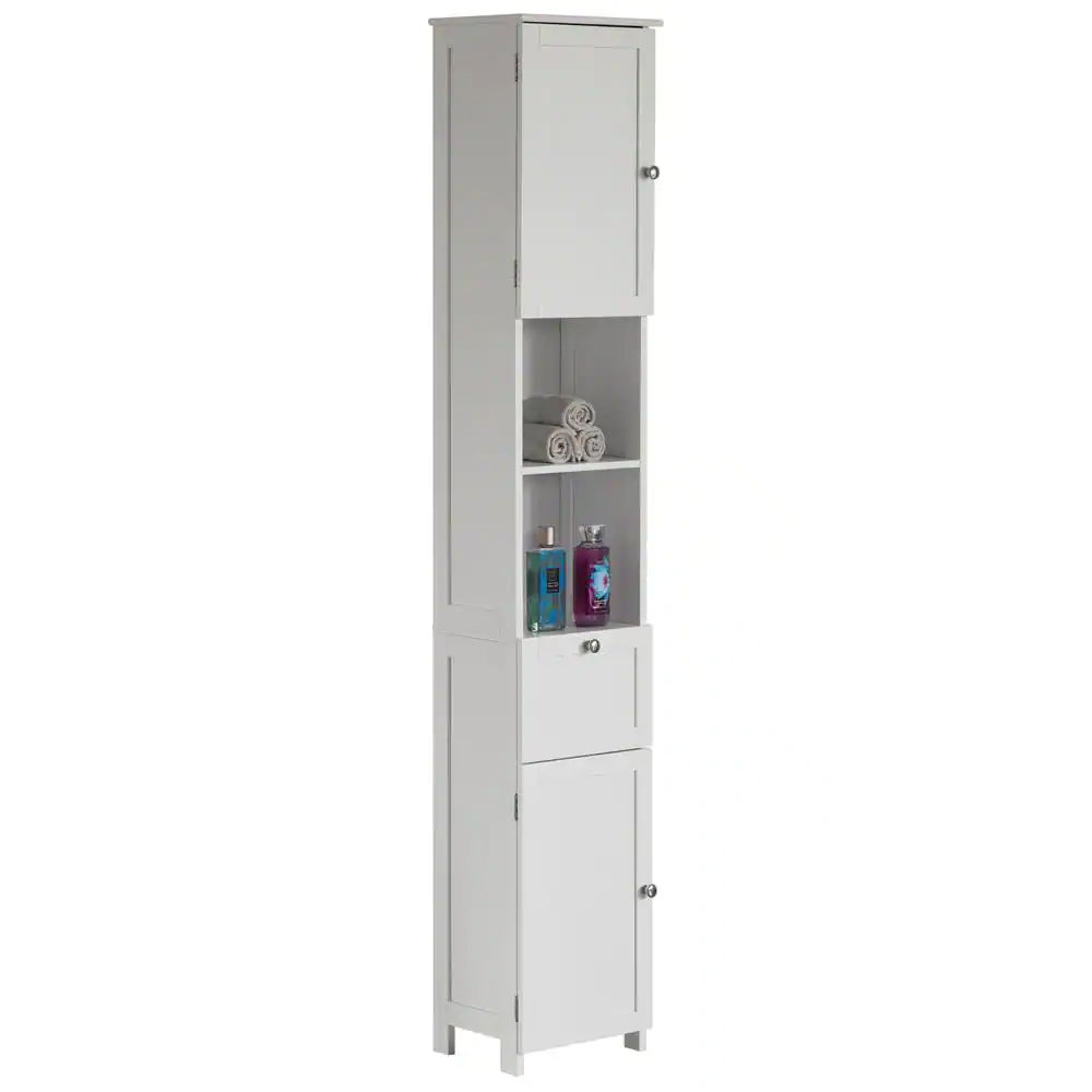 Basicwise White Tall Standing Bathroom Linen Tower Storage Cabinet for Bathroom and Vanity