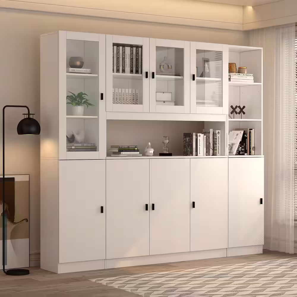 None 3-in-1 White Wood Buffet and Hutch Combination Cabinet with Glass Doors Shelves (78.7 in. W x 12.2 in. D x 70.9 in. H)