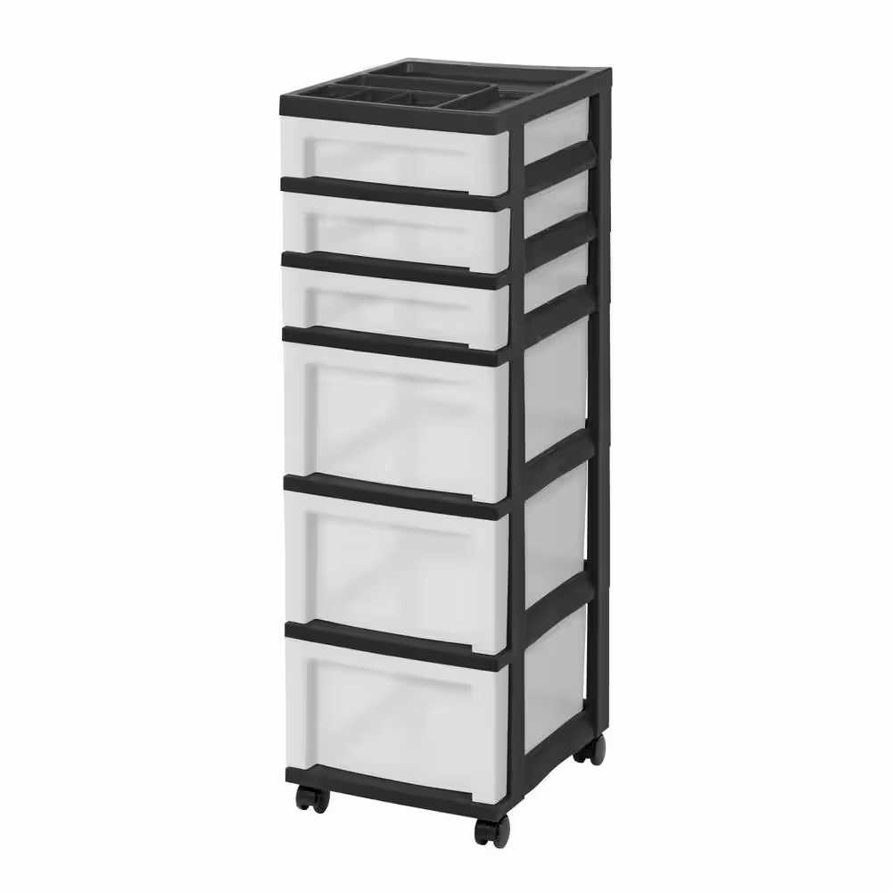 IRIS 14.25 in. D x 12.05 in. W x 37.75 in. H 6-Drawer Storage Cart with Organizer Top in Black and Pearl