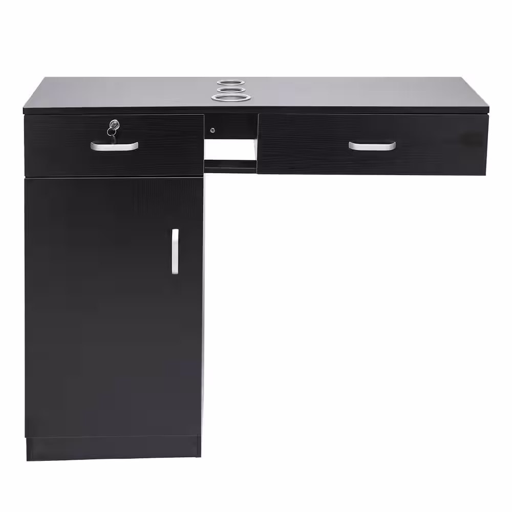 None Wall Mount Black Hair Styling Barber Station Table with 2-Drawers