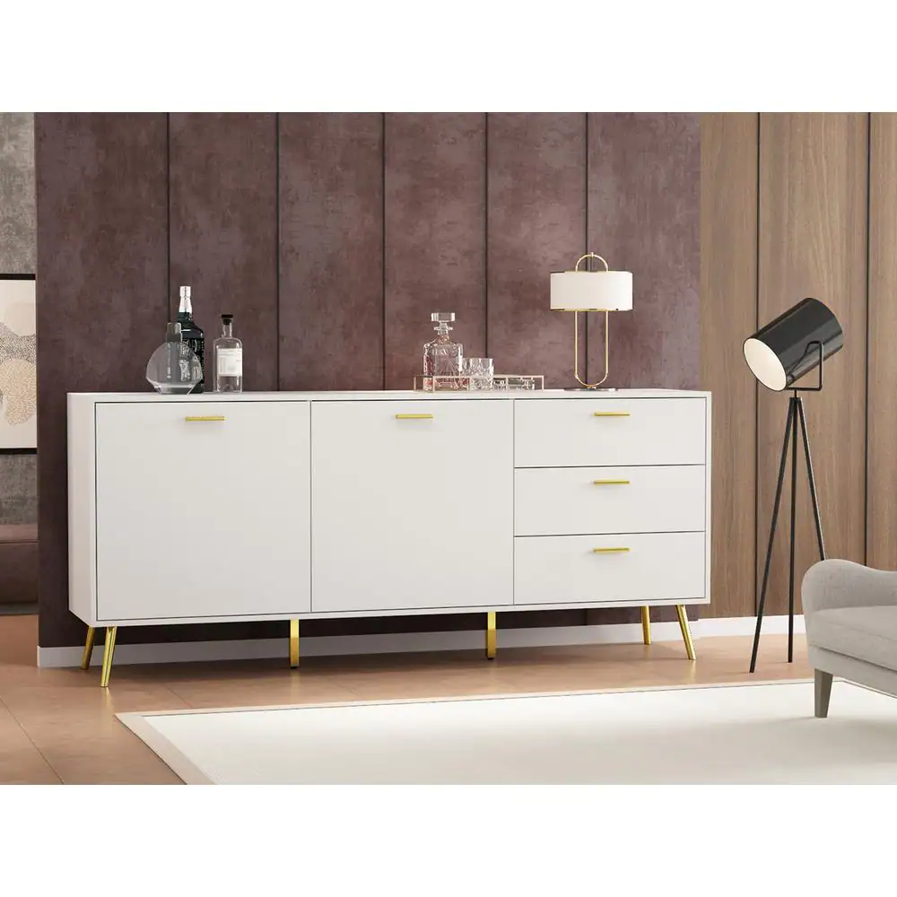 FUFU&GAGA 69 in. White Wood 2-Door and 3-Drawers Storage Accent Cabinet With Metal Leg Storage Cupboard, TV Stand Buffet Sideboard