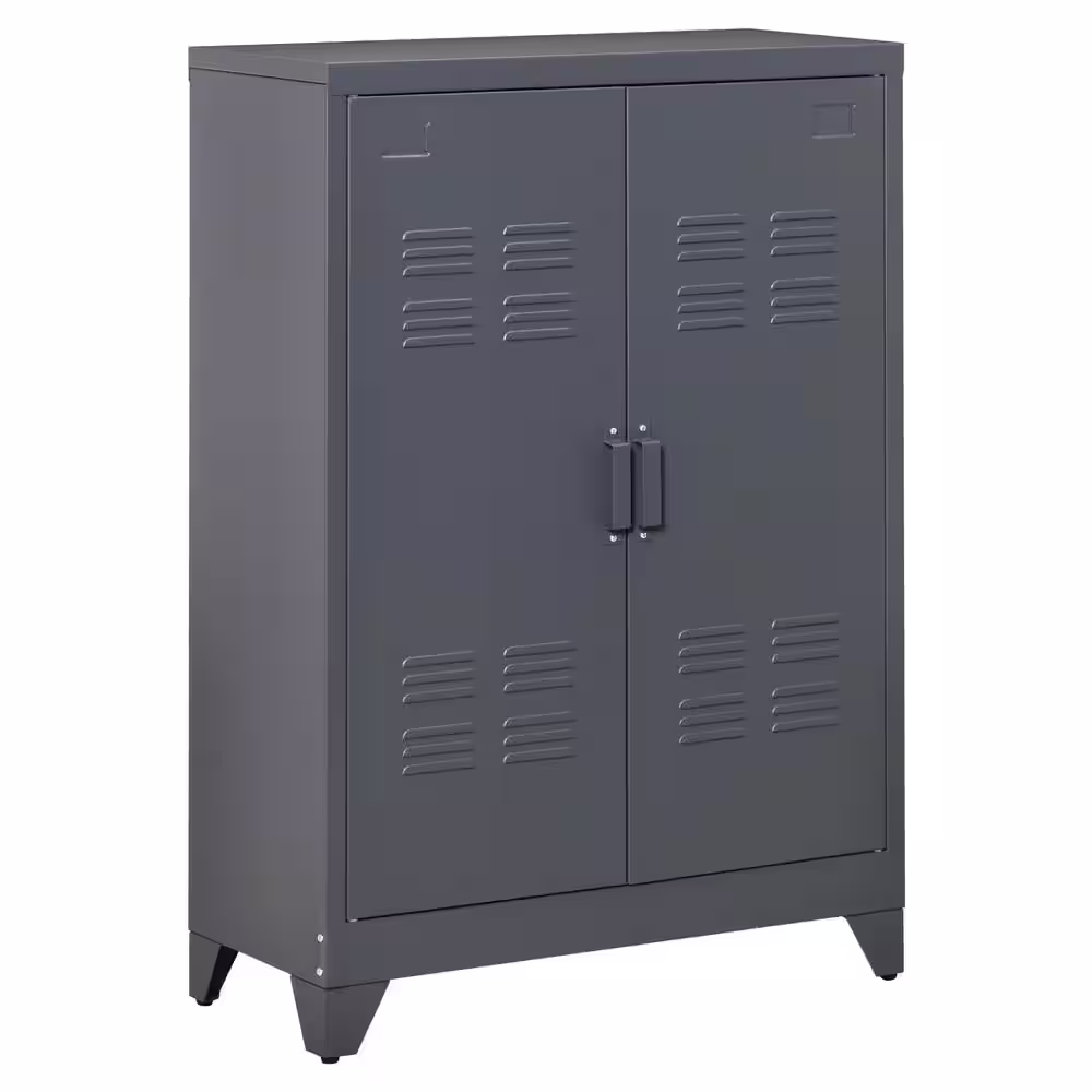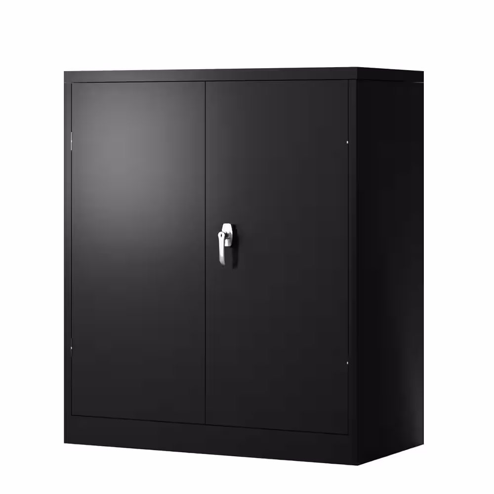 None Black Metal Lockable Storage Cabinet with 2 Doors and 2 Shelves