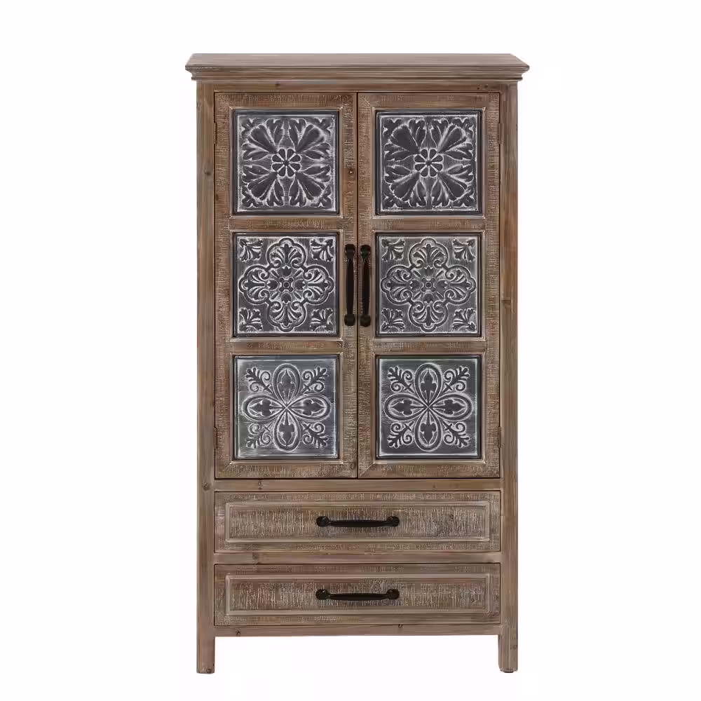 LuxenHome Brown and Gray Wood and Metal Wardrobe Storage Accent Cabinet