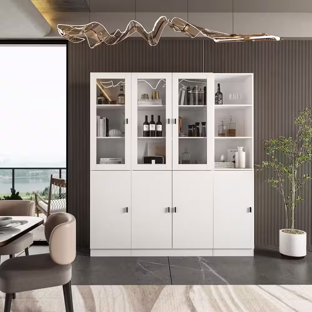 FUFU&GAGA 3-in-1 White Wood Buffet and Hutch Combination Cabinet with Glass Doors, Shelves (62.9 in. W x 12.2 in. D x 70.9 in. H)