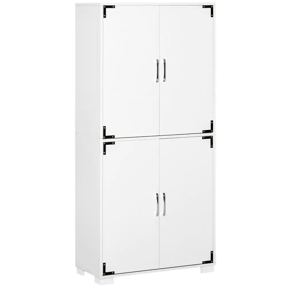 HOMCOM White 4-Door Cabinet Pantry Cupboard with Storage Shelves for Bedroom and Living Room