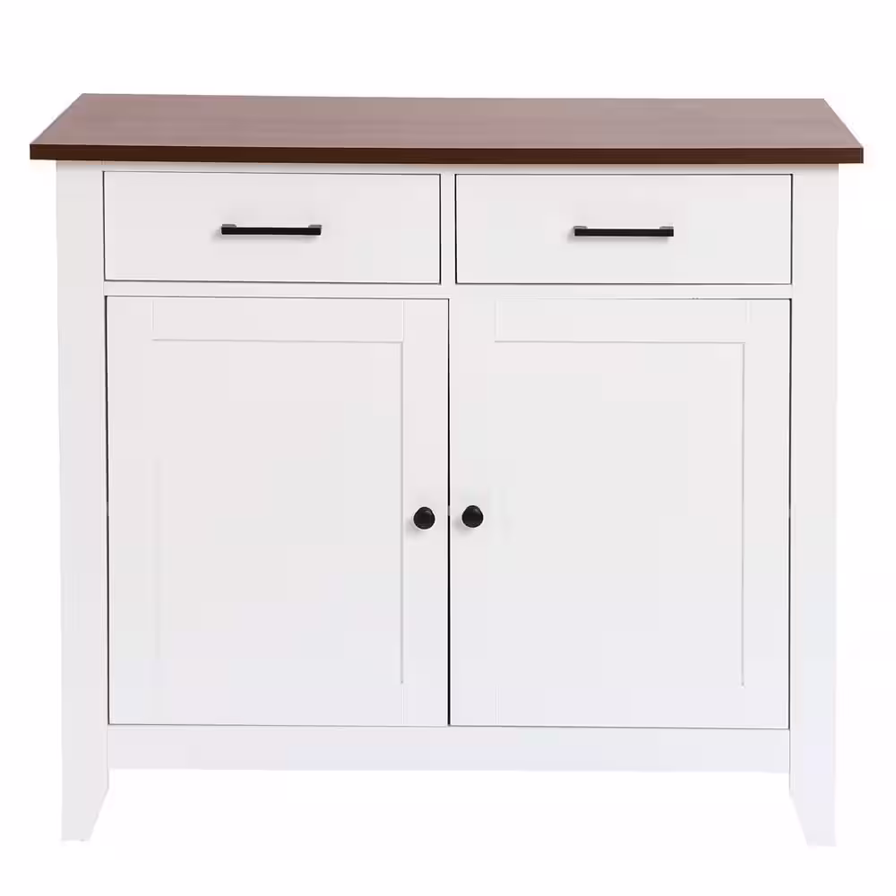LuxenHome White and Brown Accent Storage Cabinet with Doors, Drawers and Shelf