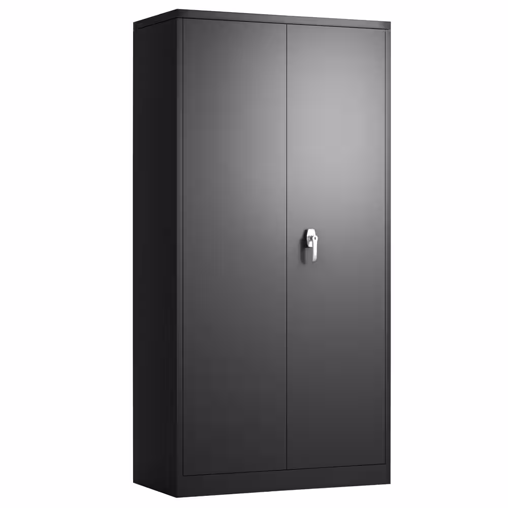 None 72 in. H Black Steel Storage Cabinet with 2-Doors and 4-Adjustable Shelves Lockable Tall Cabinet