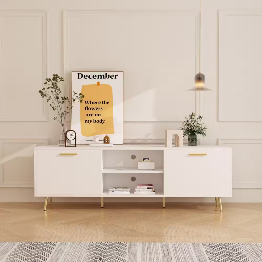 None 69 in. W White Wood Accent Storage Cabinet Sideboard Cupboard