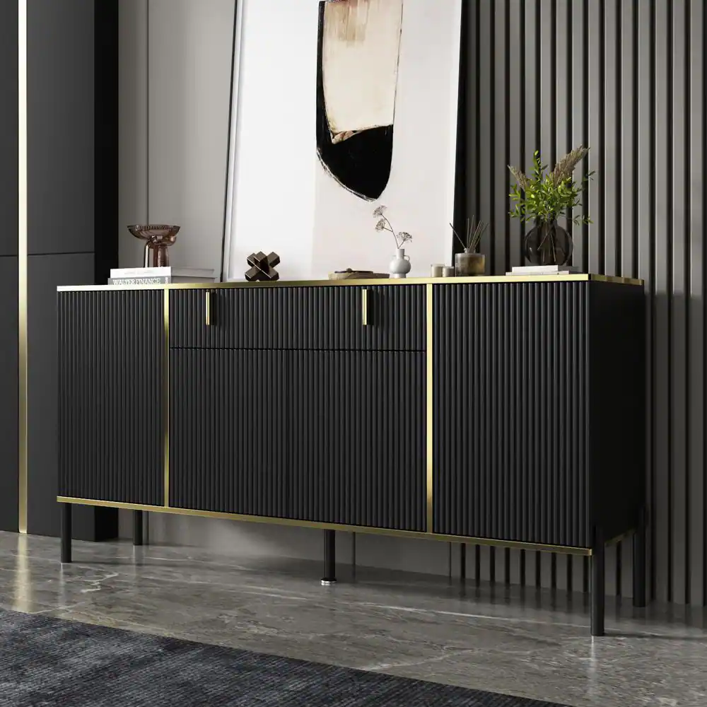 None Black Wavy Paint Finish 1-Touch Doors Accent Storage Cabinet With Adjustable Shelves and 2-Drawers