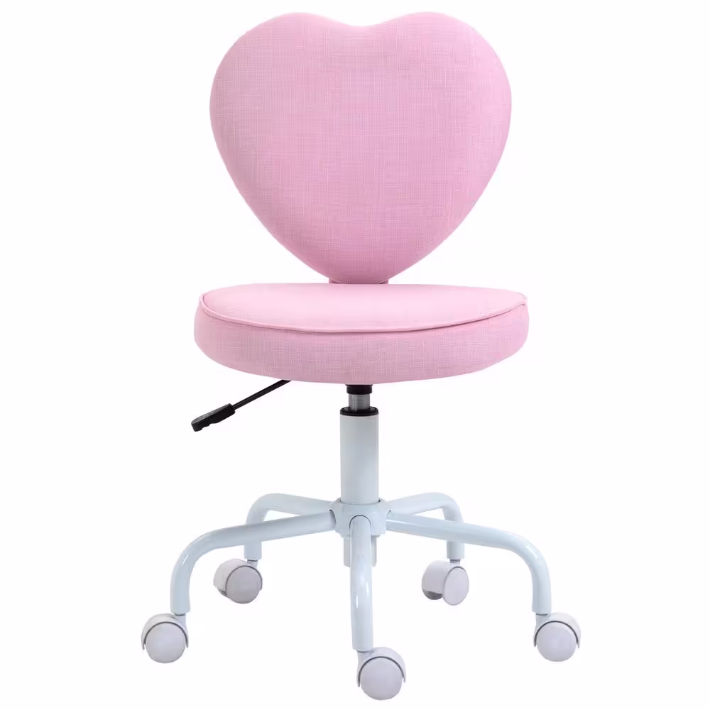HOMCOM Pink Heart Love Shaped Back Design Office Chair with Adjustable Height and 360 Swivel Castor Wheels