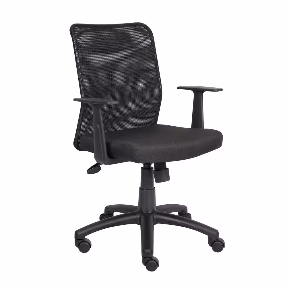BOSS Office Products Black Mesh Task Chair with T-Arms, Seat Height Adjustment