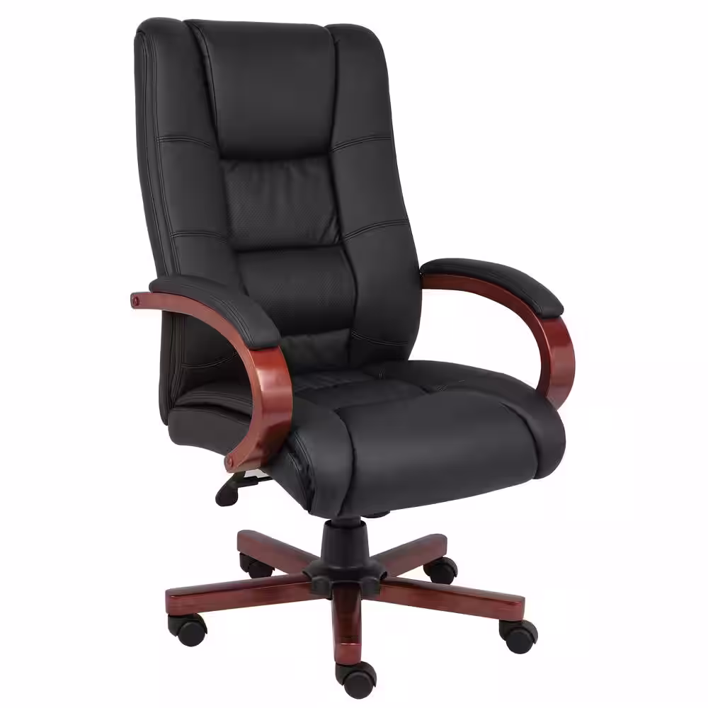 BOSS Office Products Executive High Back Wood Frame Chair - Black Caressoft Cover - Cherry Finish - Padded Arms - by BOSS