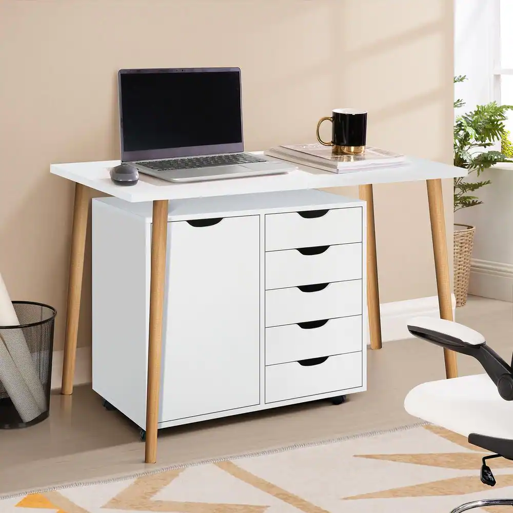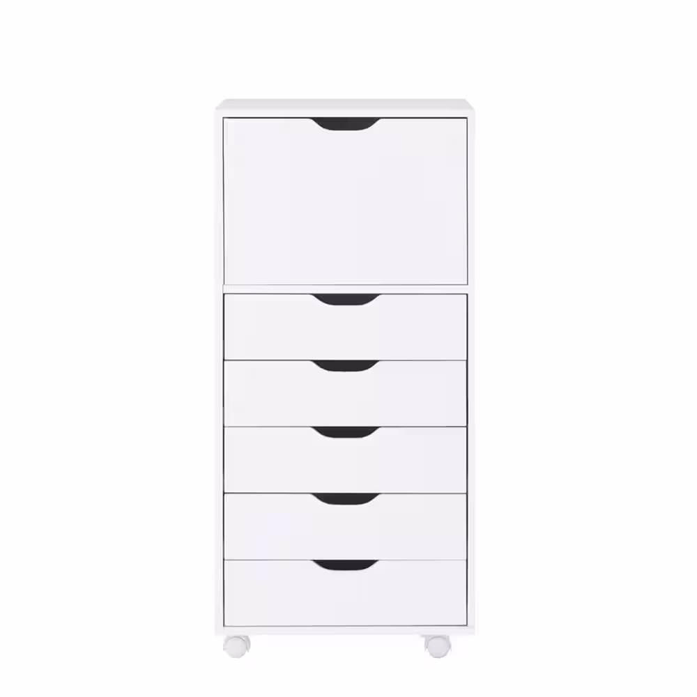 HOMESTOCK White, 5 Drawer Wood Storage Dresser Cabinet with Shelves, Wheels, Craft Storage, Makeup Drawer File Cabinet,