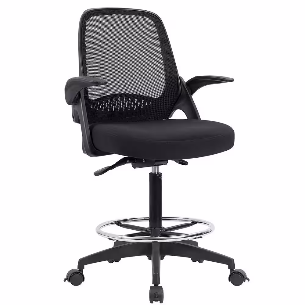 Lucklife Black Mesh Drafting Chair Tall Office Chair with Flip-up Armrests