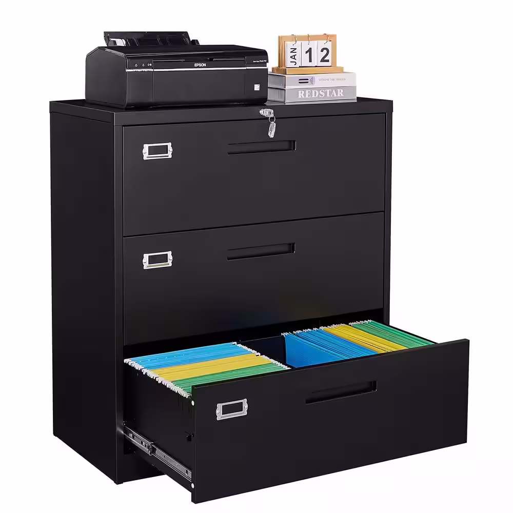 None Black File Cabinet 3-Drawer with Lock, Locking Metal Lateral Filing Cabinet for Home Office