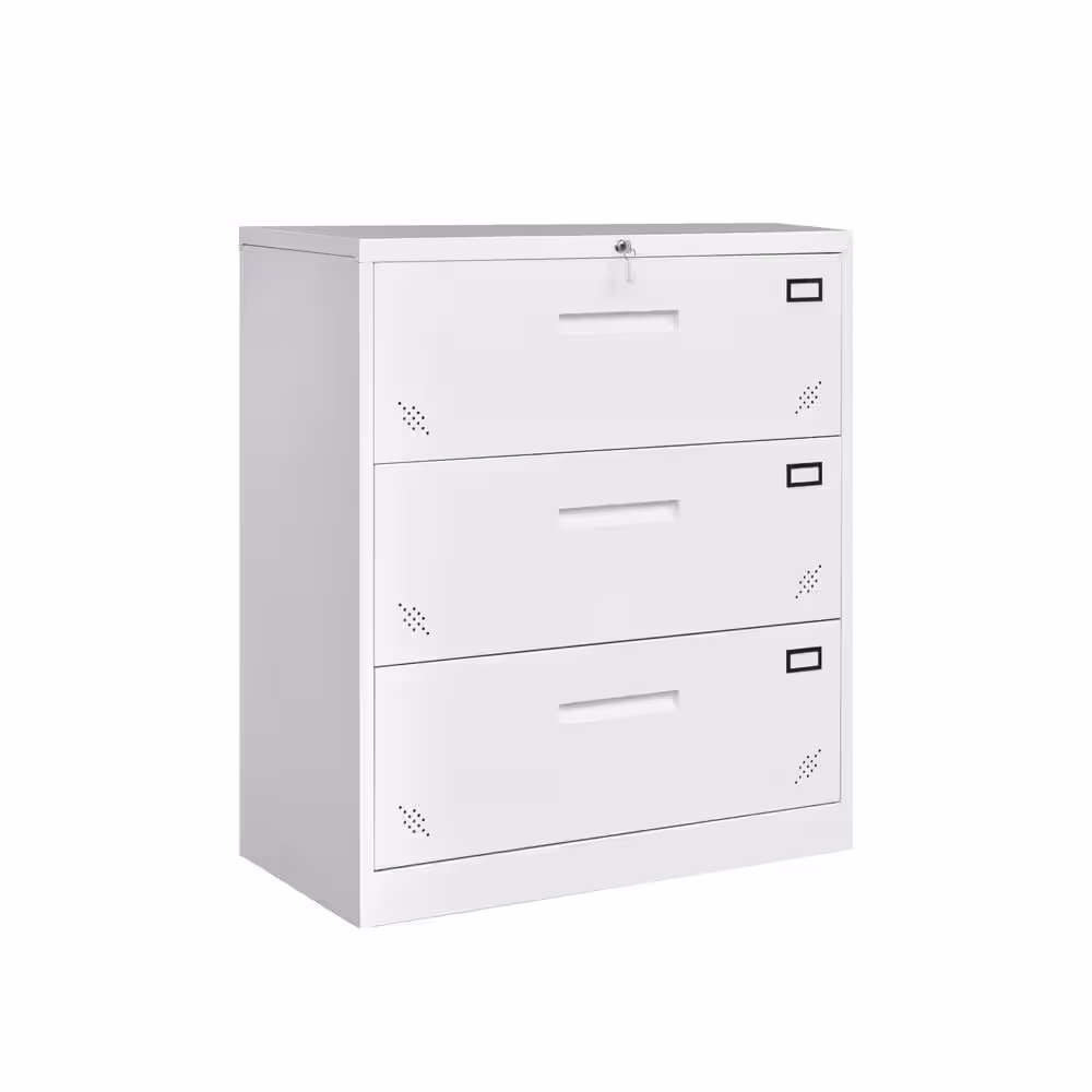 None 3-Drawer White 40 in. H x 35 in. W x 18 in. D Metal Steel Lateral File Cabinet for Legal/Letter A4 Size