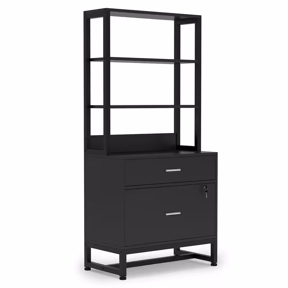 TRIBESIGNS WAY TO ORIGIN Cindy Black Vertical File Cabinet with Shelves, Stander Drawer and File Drawer