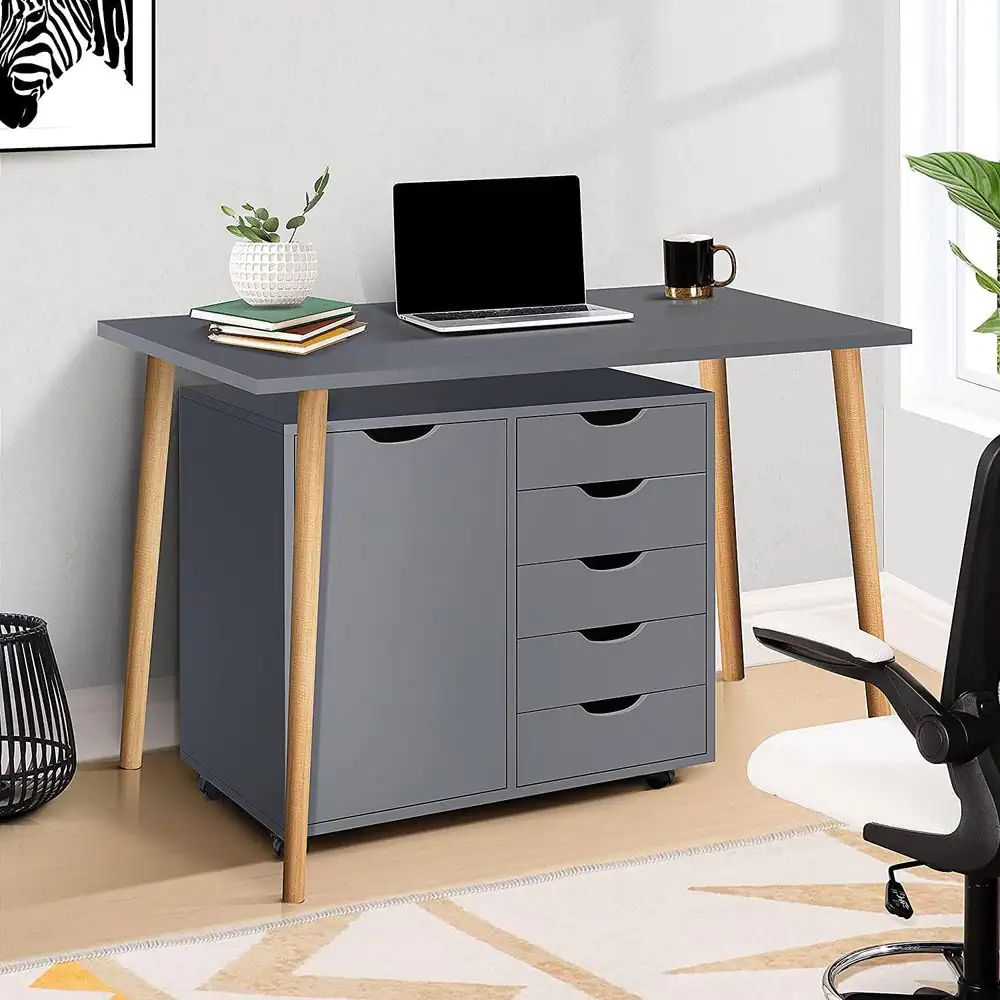 HOMESTOCK Gray, 5 Drawer with Shelf, Office File Cabinets Wooden File Cabinets for Home Office Lateral File Cabinet