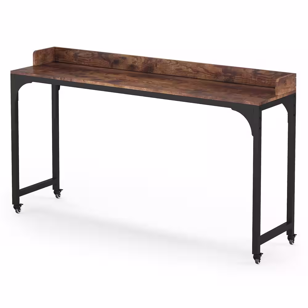 Tribesigns Cassey 70.87 in. Retangular Rustic Brown Wood and Metal Writing Desk Overbed Table with Wheels