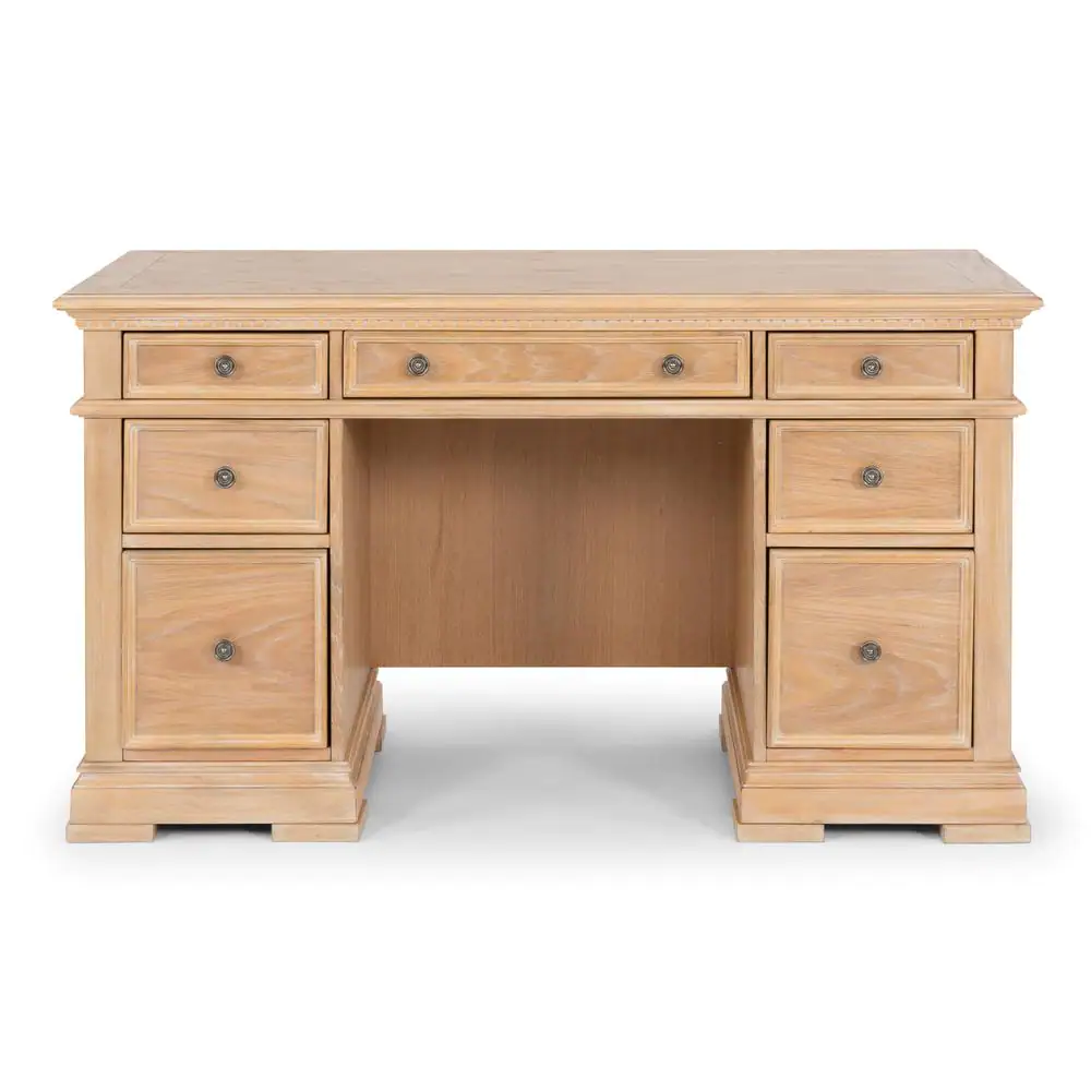 HOMESTYLES Manor House 56 in. Natural Wood 7-Drawer Pedestal Executive Desk